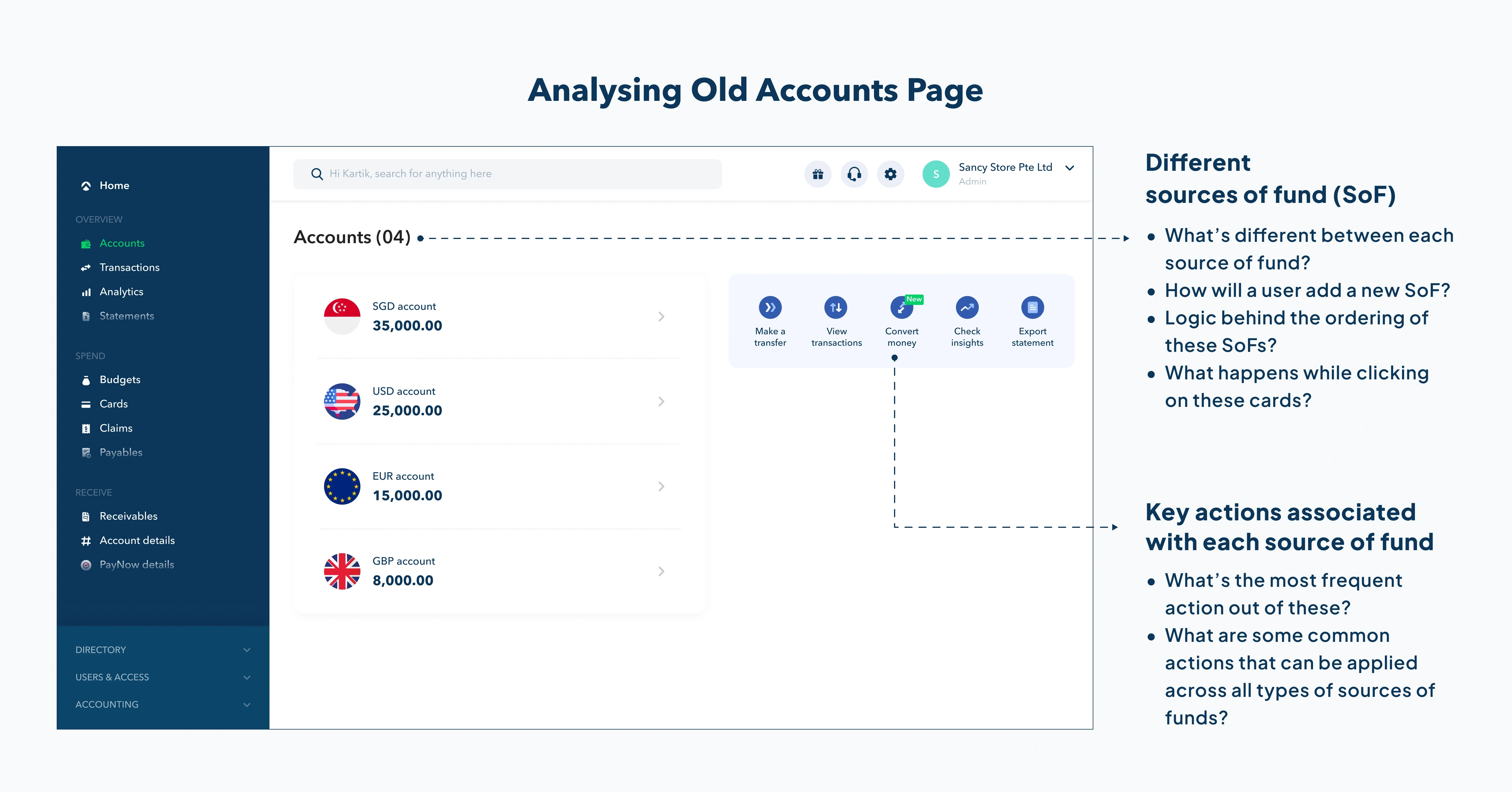 Analyzing existing accounts page