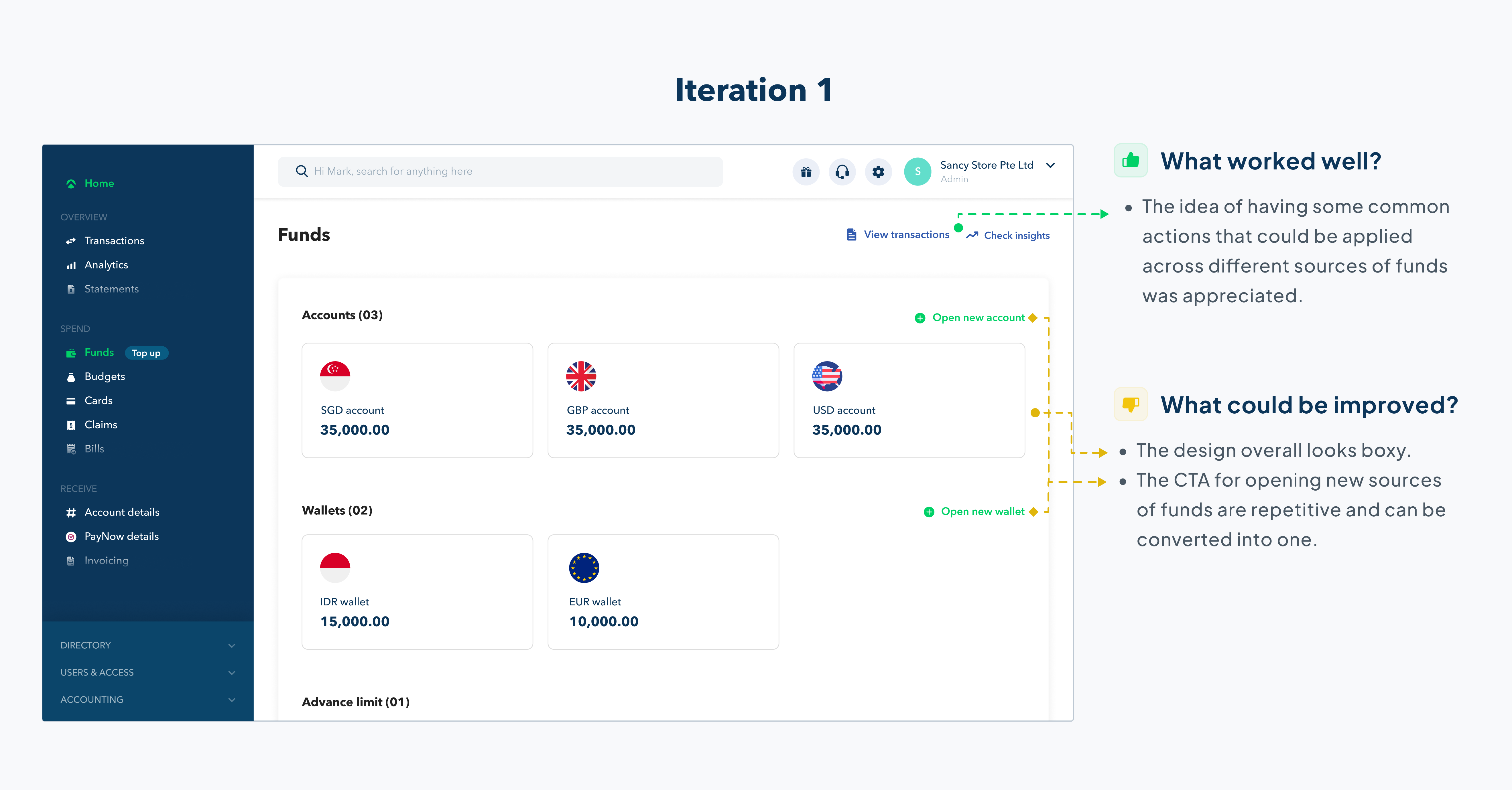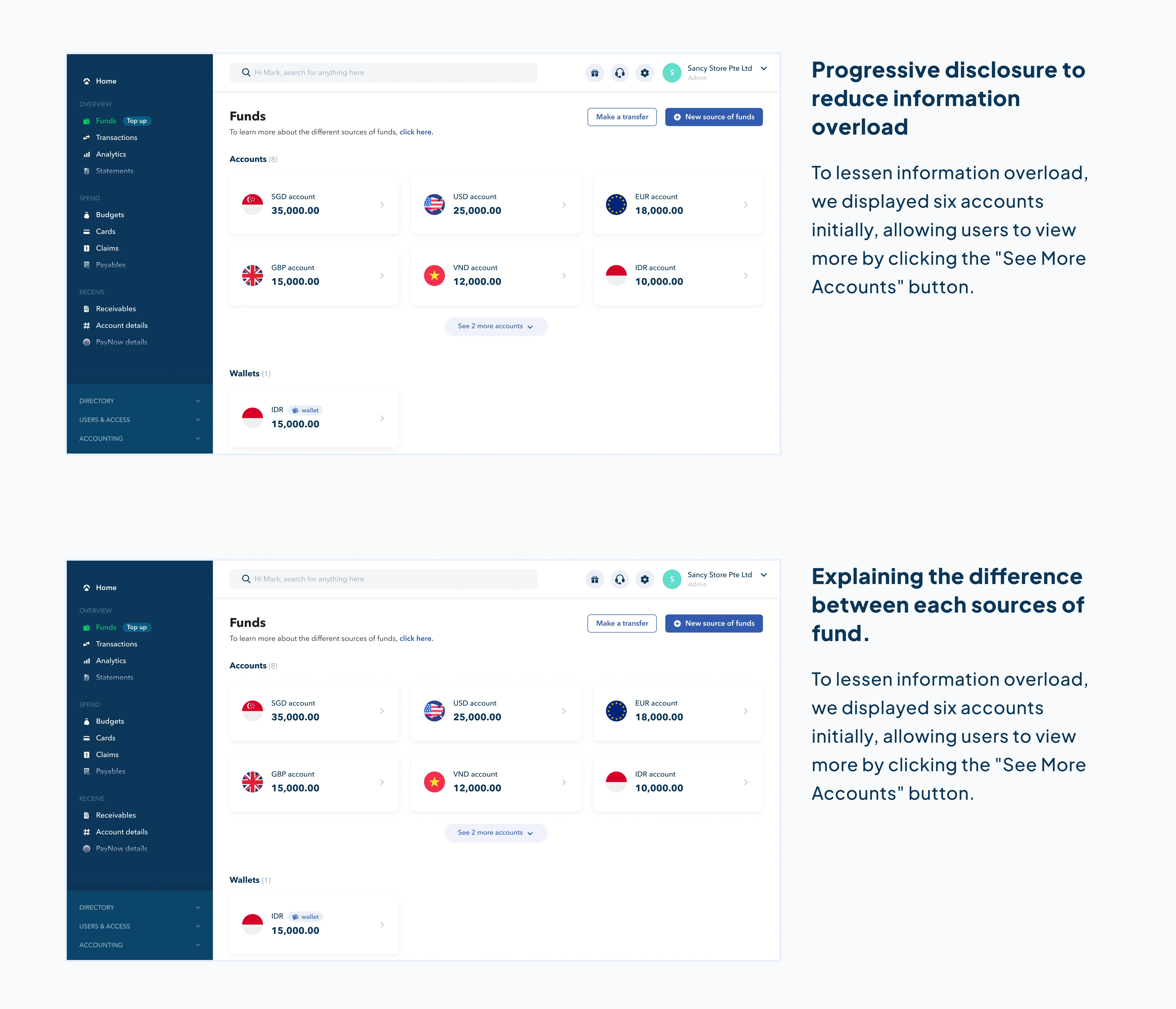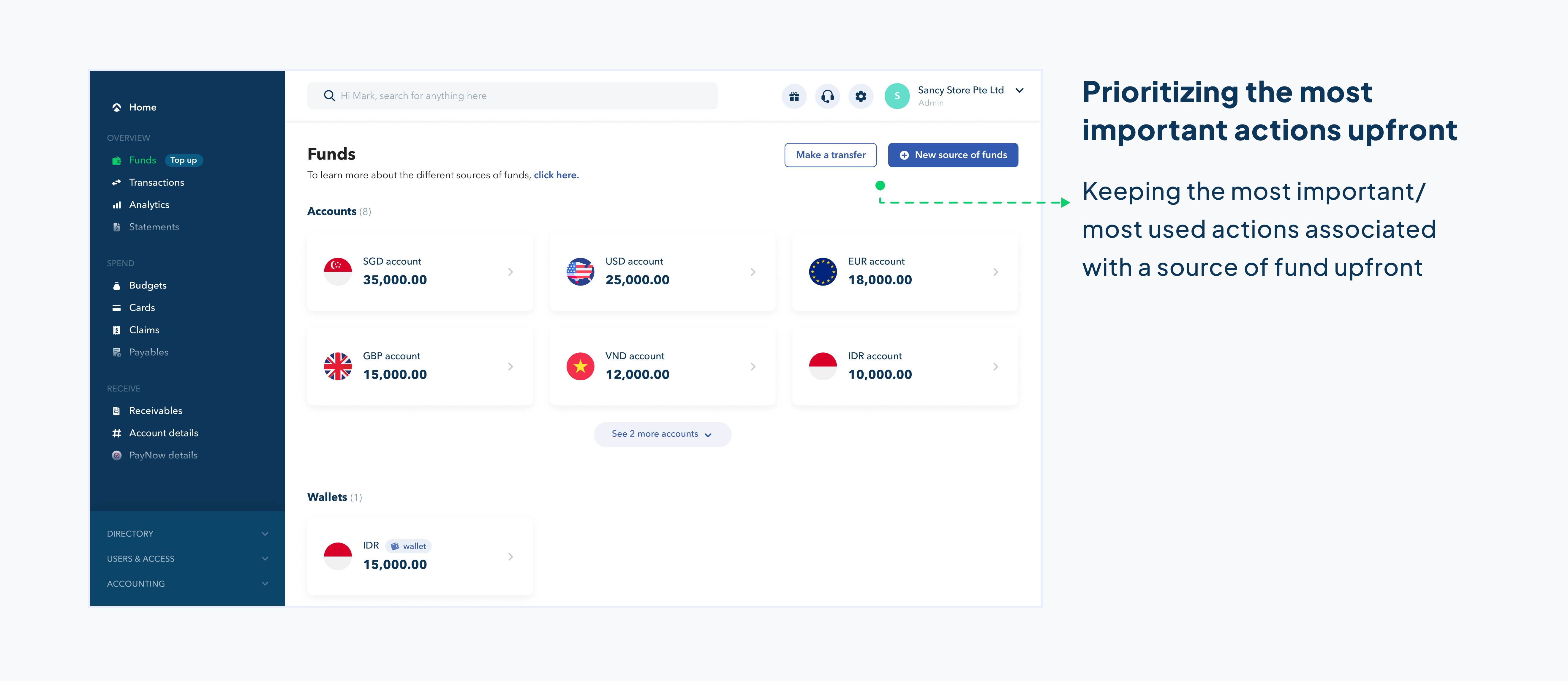 With three different sources of funds, it would be easier for the customers if they could access all of them at one single place within the dashboard.