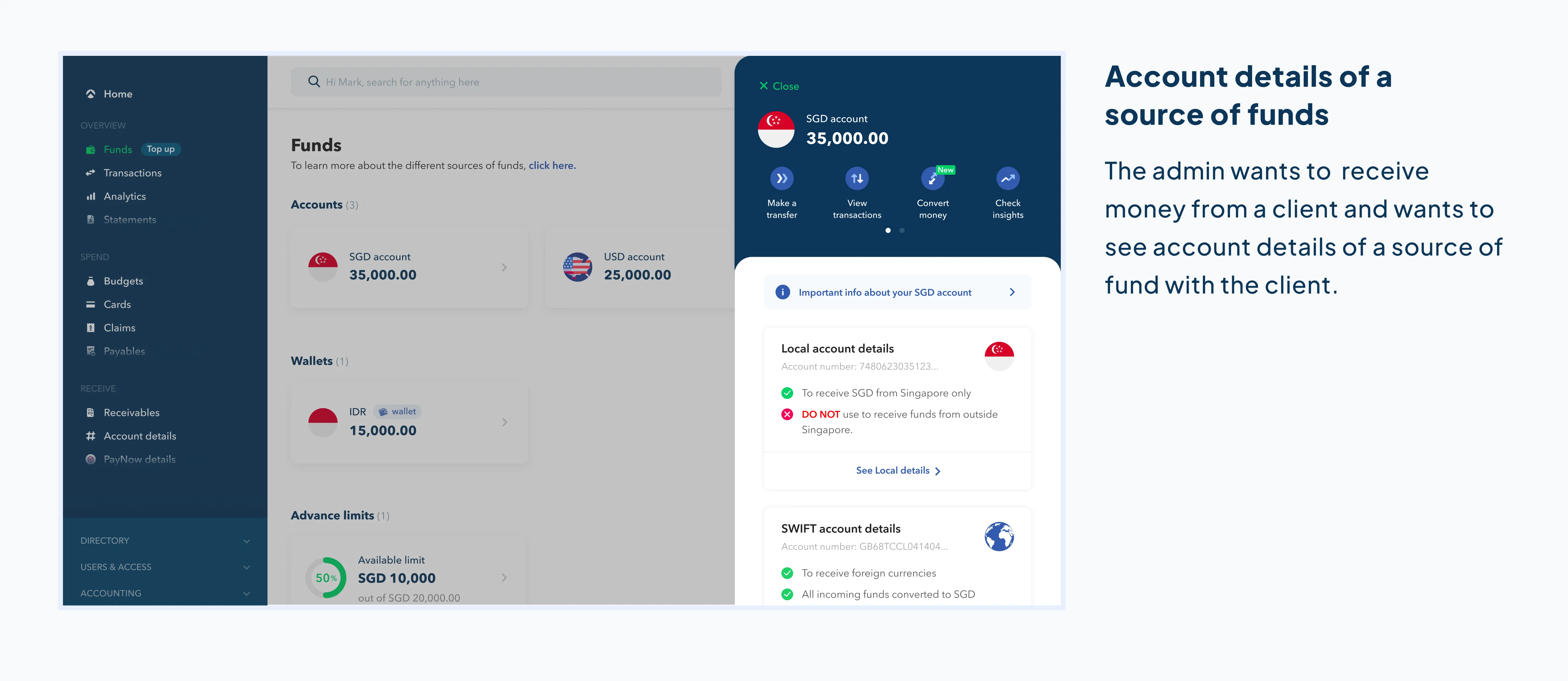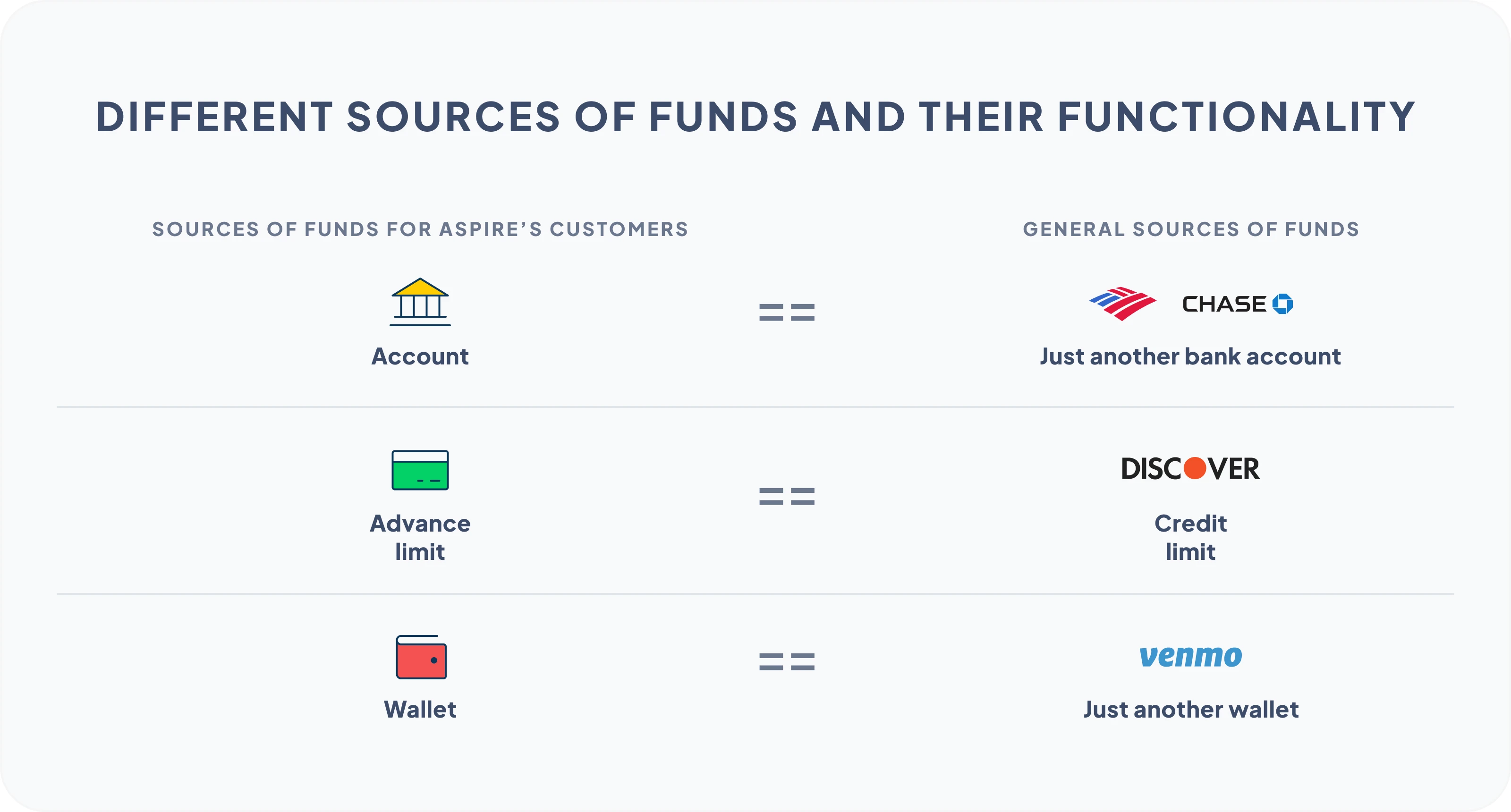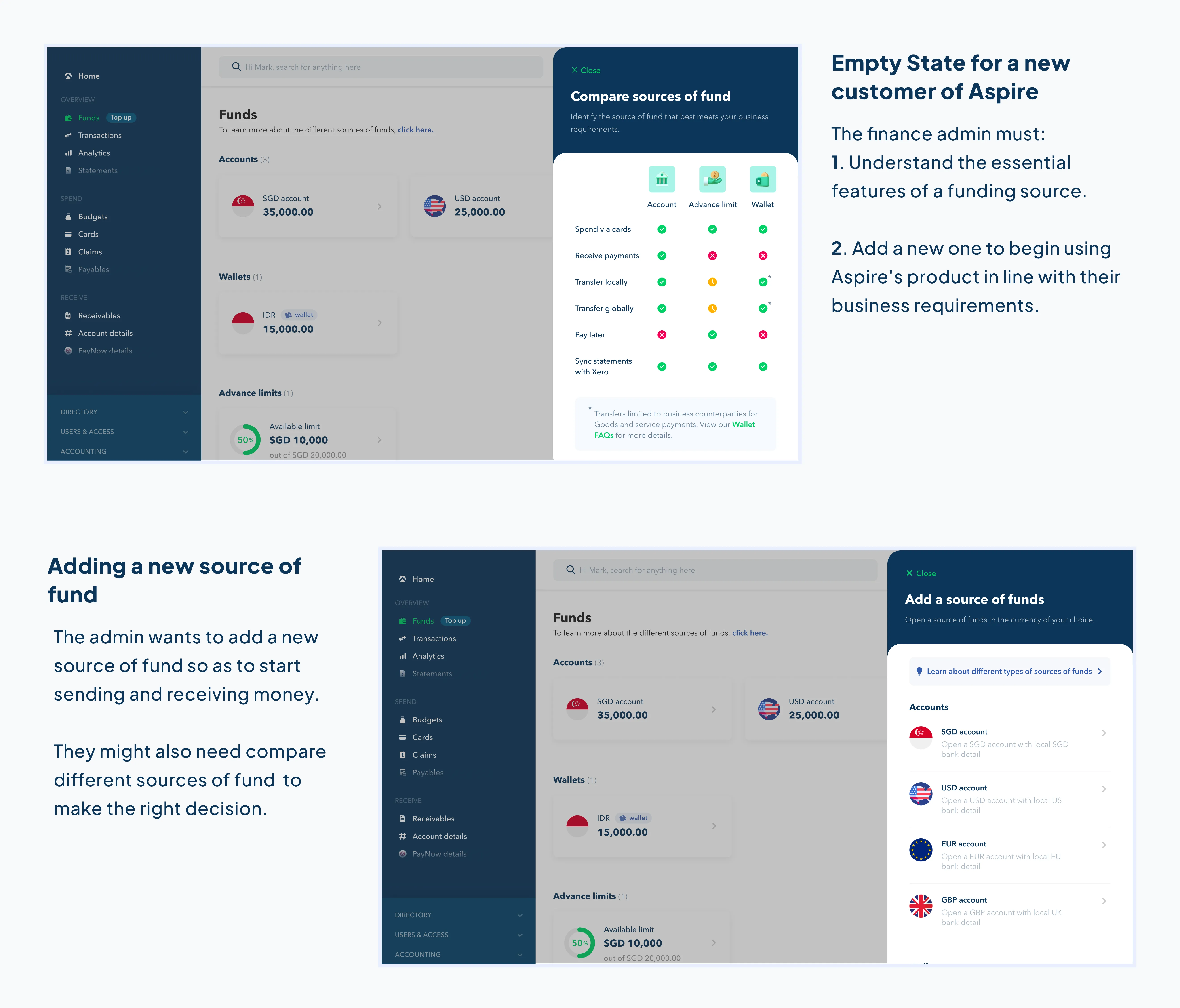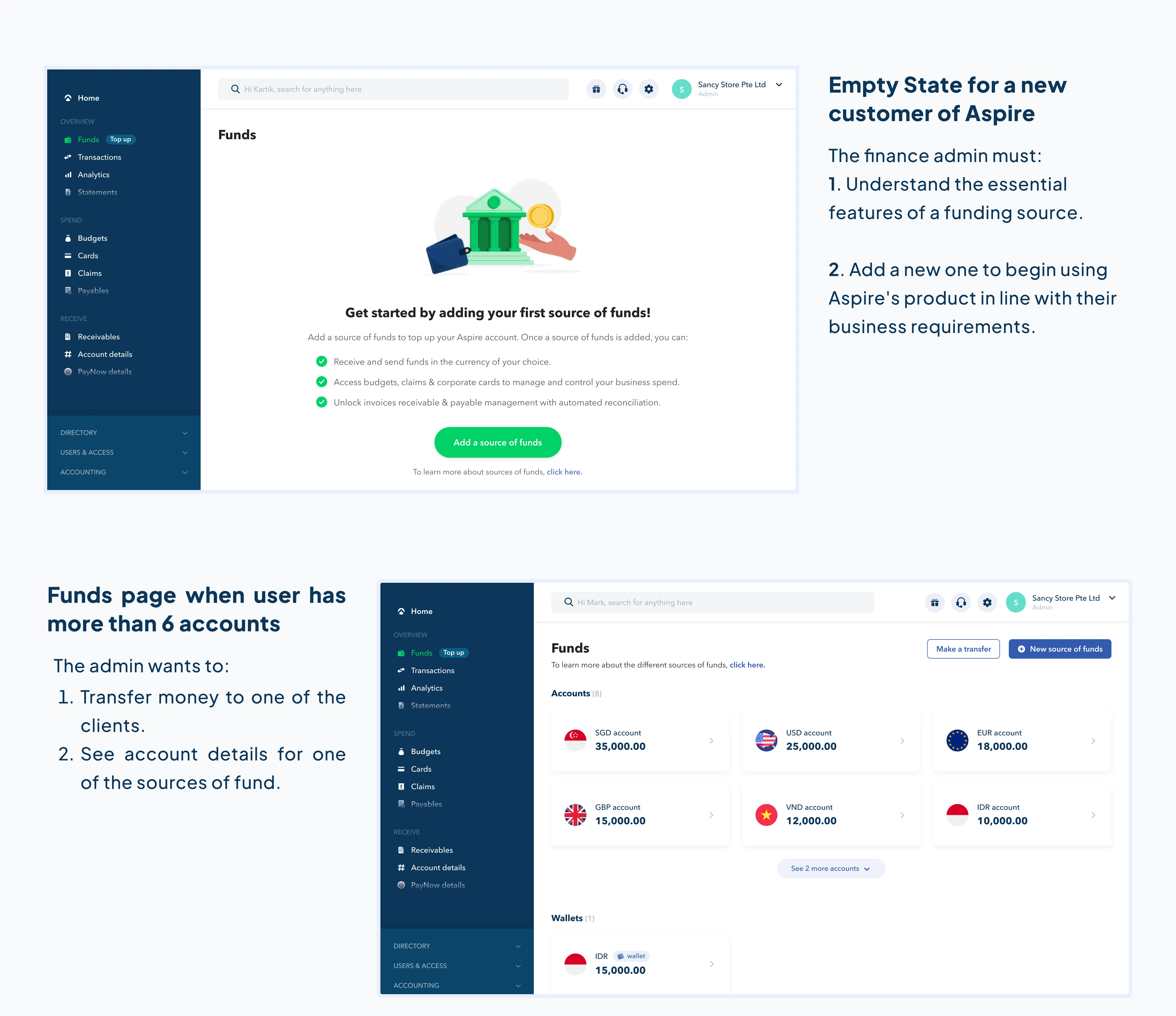To send/receive money, any customer at Aspire has 3 sources of fund: