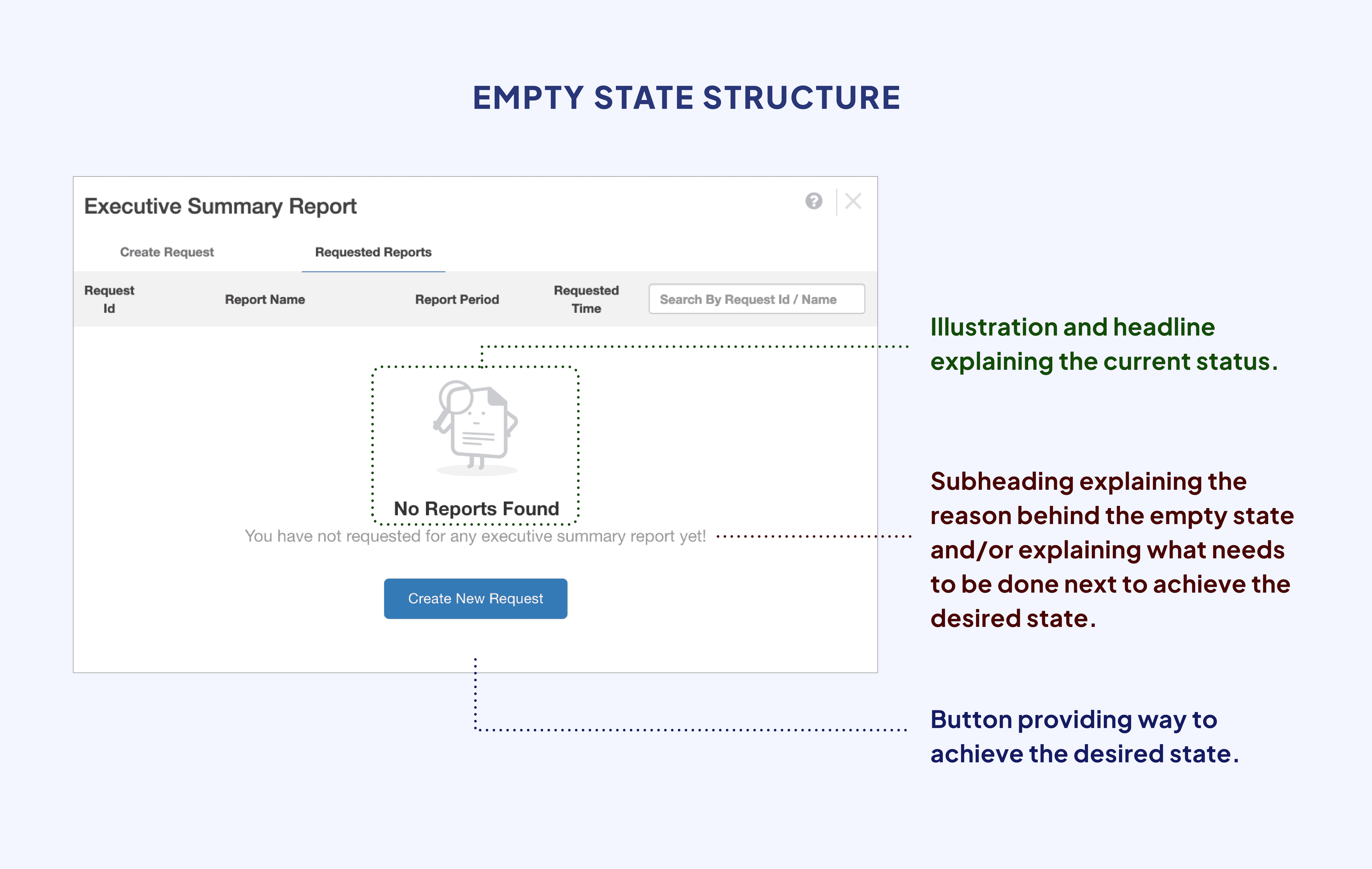 Figured out a structure for the empty state: While looking at other products and their empty states, I figured out a structure for the empty state: