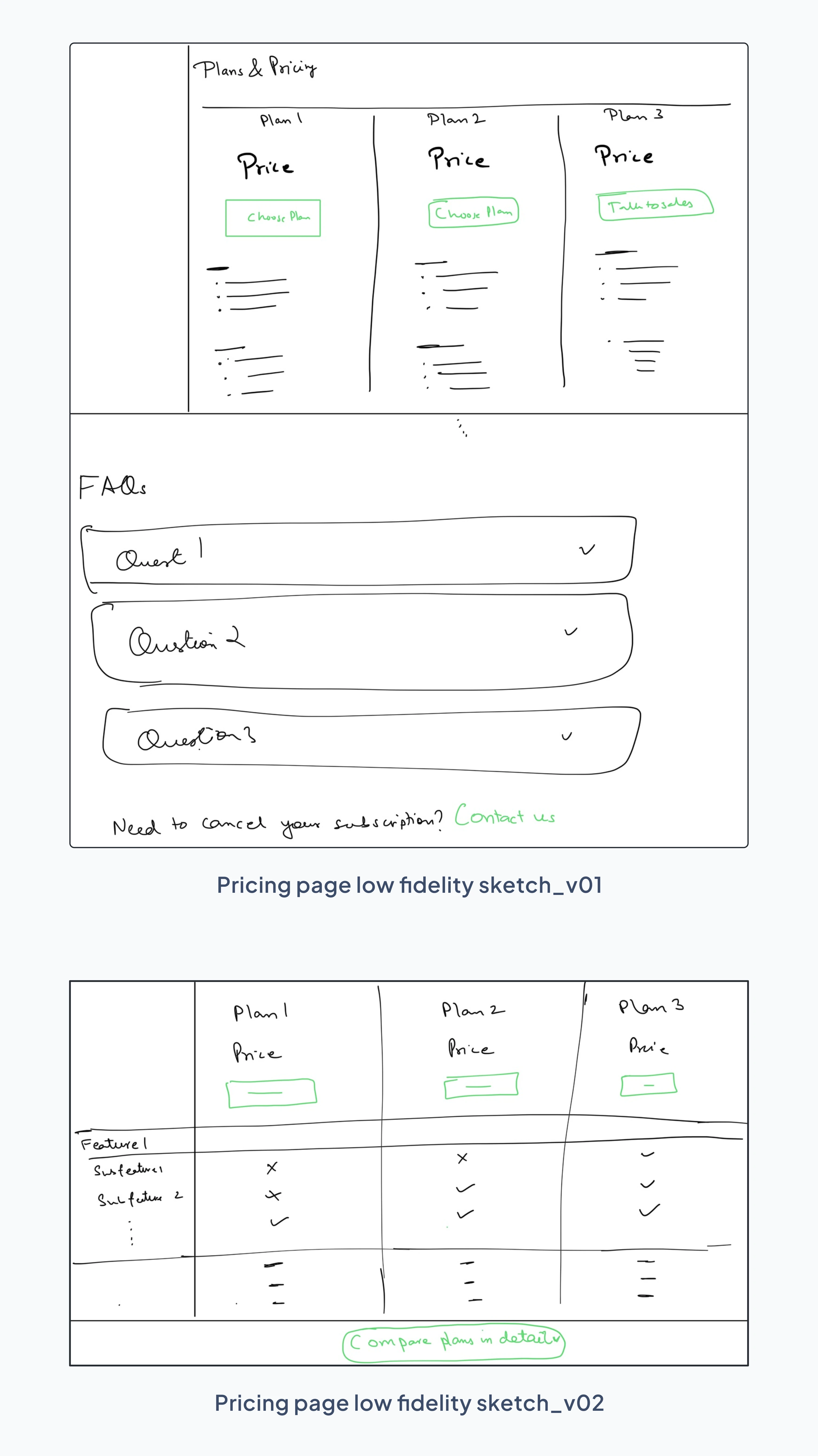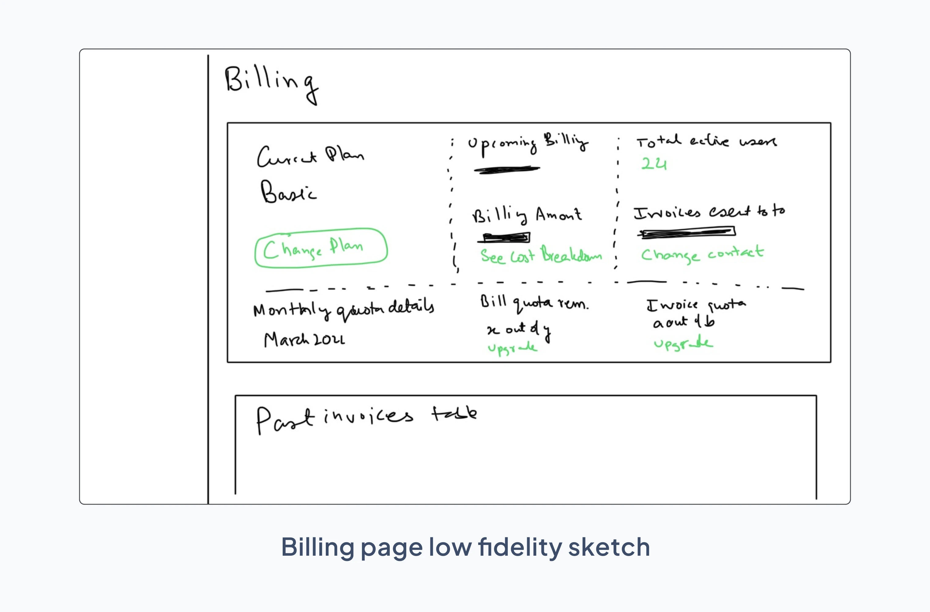 What I did : Looked at some other products like Figma, Zoho, Mailchimp for inspiration around pricing plans.Thought about different actions/information that a user would require when it comes to pricing and billing. Later on, grouped similar information/user actions together.