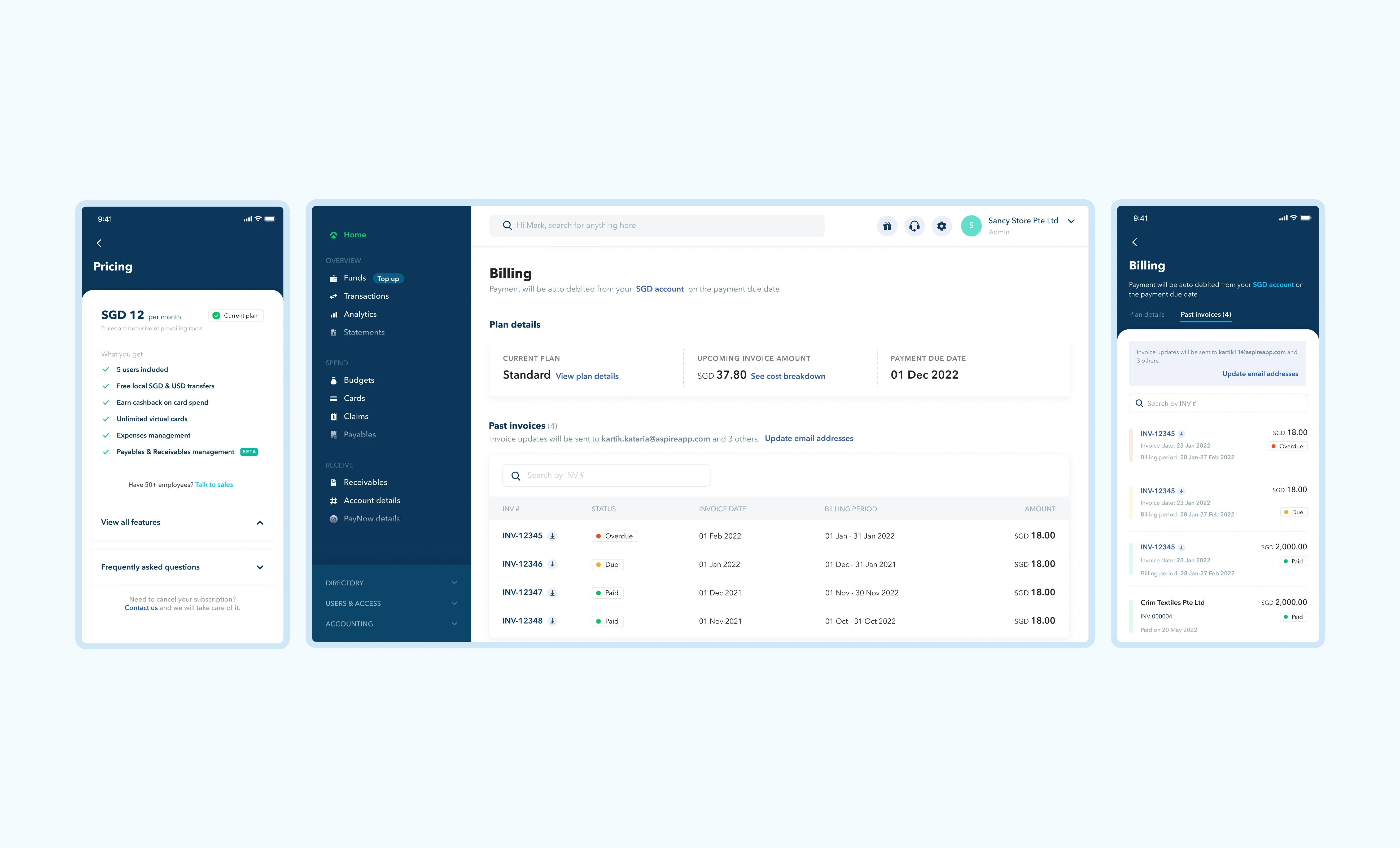 The goal of this project was to monetize the product. As a result, pricing plans were introduced, allowing the customers to subscribe, pay and continue using Aspire to manage their finances.